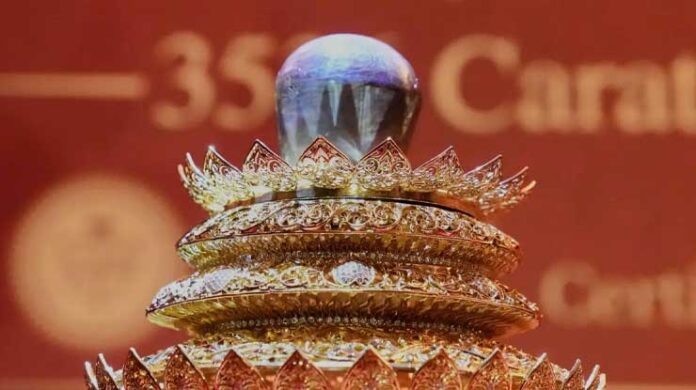 “Star of Pure Land” ලෙස නම් කර ඇති වටකුරු හැඩැති මැණික ලොව විශාලතම ලේඛනගත ස්වාභාවික දම් පැහැති තරු නිල් මැණික බව උපදේශක මැණික් විශේෂඥයකු වන අෂාන් අමරසිංහ මහතා පවසා තිබෙනවා.