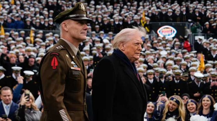 සියලුම ඇමරිකානුවන් කැමැති වුවද අකමැති වුවද පැය හතරක පාපන්දු තරගයක් අනිවාර්යයෙන් නැරඹිය යුතු බව ජනාධිපති ඩොනල්ඩ් ට්රම්ප් පවසා තිබෙනවා. මෙම පාපන්දු තරගය වන්නේ හමුදා සහ නාවික පාපන්දු තරගයයි.